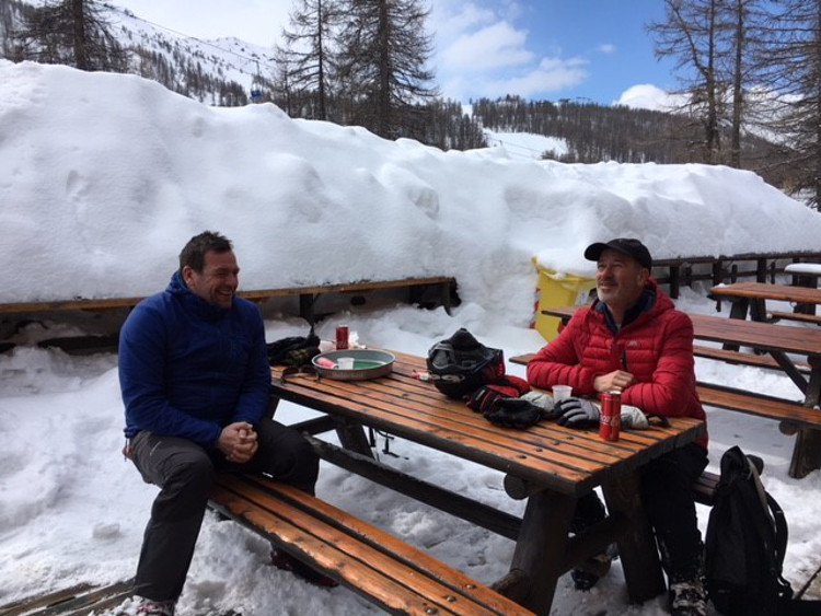 Figure 1 Tony(left) and Matt enjoying a spot of lunch at the Sportinia last week, just look at the snow!