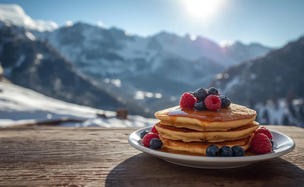But it’s more than that. Skiing is about comfort. Cosy mountain restaurants. Long lunches. Steam rising from mugs of hot chocolate. Pancakes fit right into that picture.