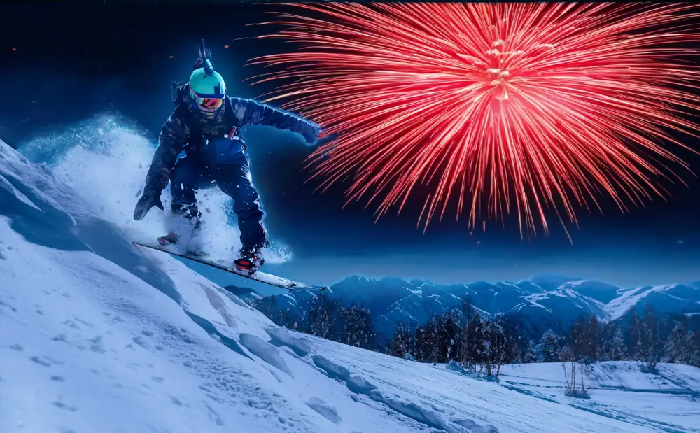 Skiing and snowboarding over the New Year period has become extremely popular, and resorts have reacted to this by providing a feast of free entertainment, including torchlight descents, firework displays, music and dancing.