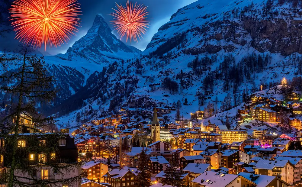 Resorts, including Cervinia and La Thuile, are hosting torchlight processions, music, and fireworks.
