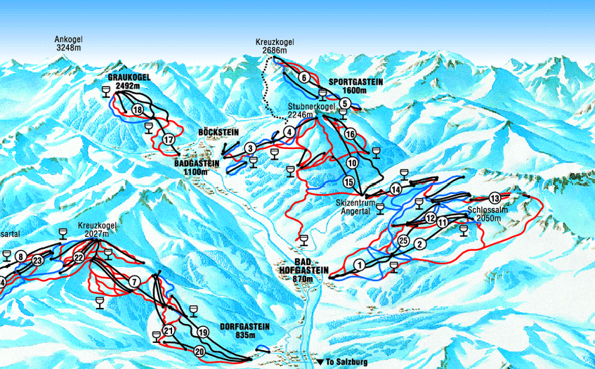 Set in the heart of Austria’s Gastein Valley, Bad Hofgastein ski resort is a snow-sure destination that blends scenic alpine skiing with a relaxing spa-town atmosphere. With a mix of wide, cruising reds, gentle blues for beginners, and challenging blacks for advanced skiers, the slopes cater to all abilities, while modern lifts and reliable snowmaking ensure smooth skiing throughout the season. The town itself is famed for its thermal baths and wellness facilities, making it perfect for unwinding after a day on the pistes. With cosy mountain huts, authentic Austrian cuisine, and a welcoming après ski scene, Bad Hofgastein delivers a balanced and scenic Austrian ski holiday experience.