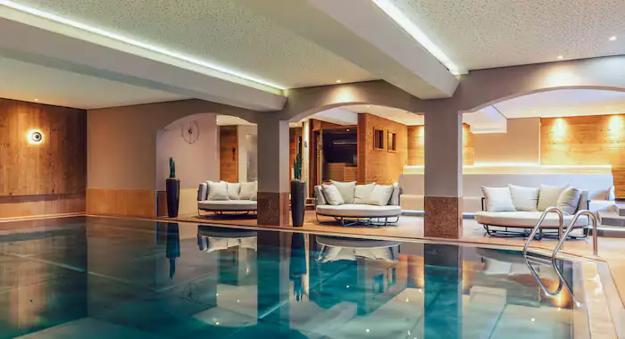 The rooms blend modern style with alpine charm – think wooden floors and panelling that give a snug feel while keeping things fresh and up to date. Each room comes with its own tea and coffee station, plus a wellness bag so you can make the most of the wellness facilities.